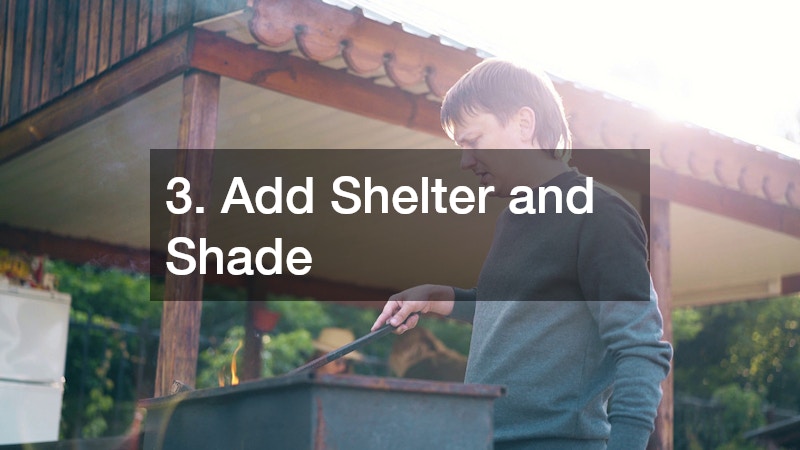 Think about areas where guests will spend the most time, such as the dining table or lounge zone. Shade can reduce glare, keep food and drinks cool, and make outdoor cooking a lot more pleasant. You might even want a small covered area near the grill for prep work, so you can cook in comfort even on hot or rainy days.
